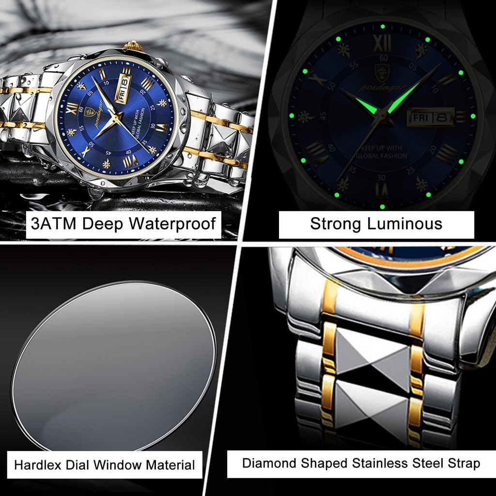 POSHI Jam Tangan Lelaki Waterproof Men Watch Business Luxury Quartz Stainless Steel Luminous Dual Calendar Charm Watches