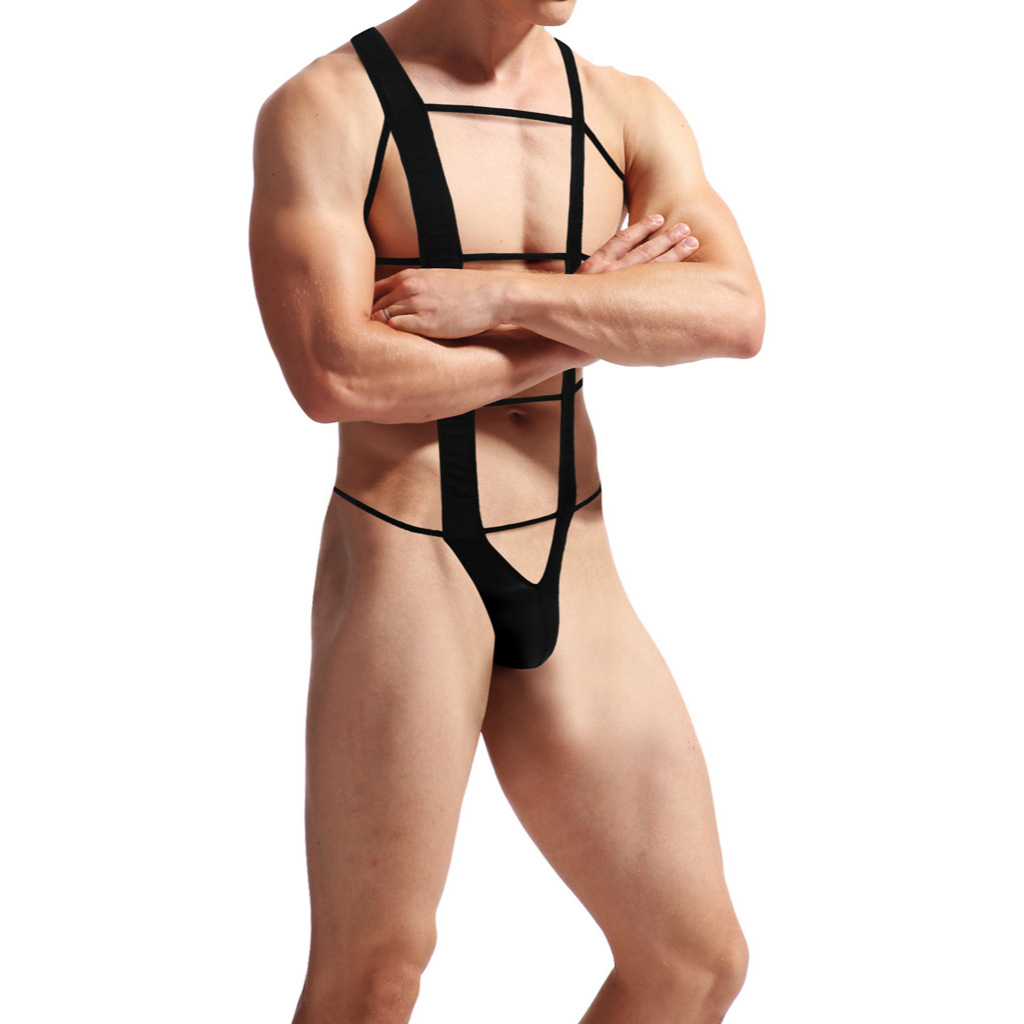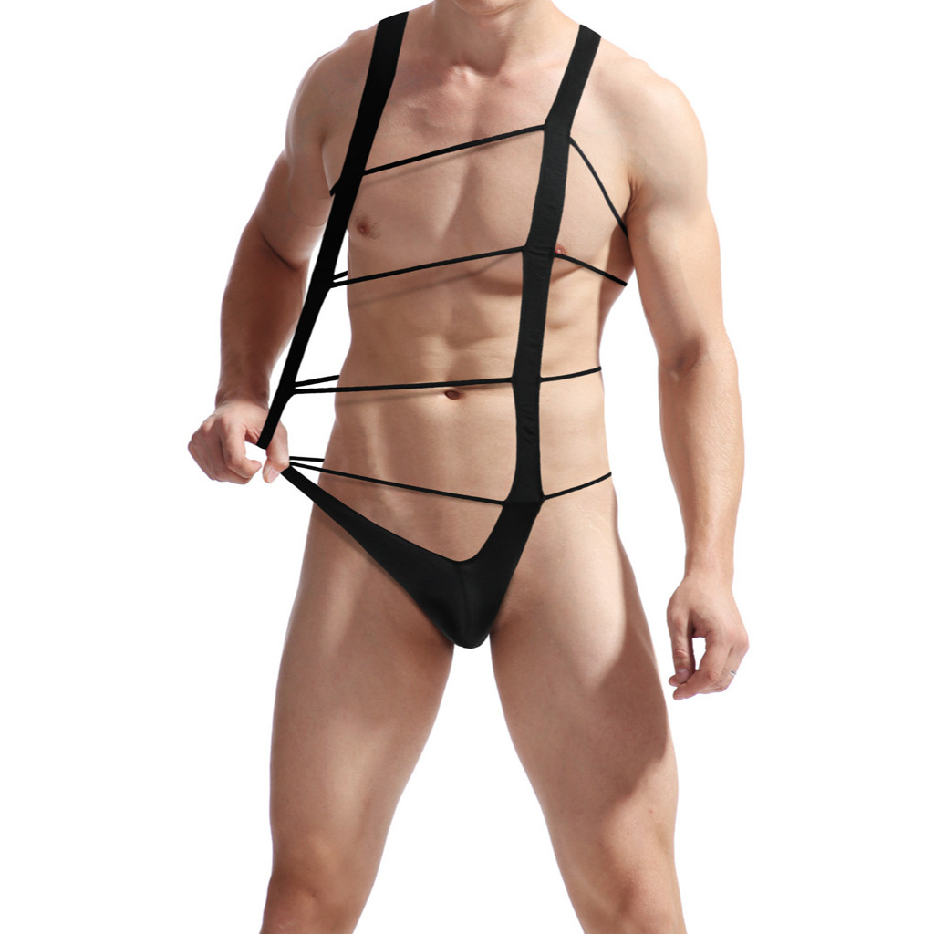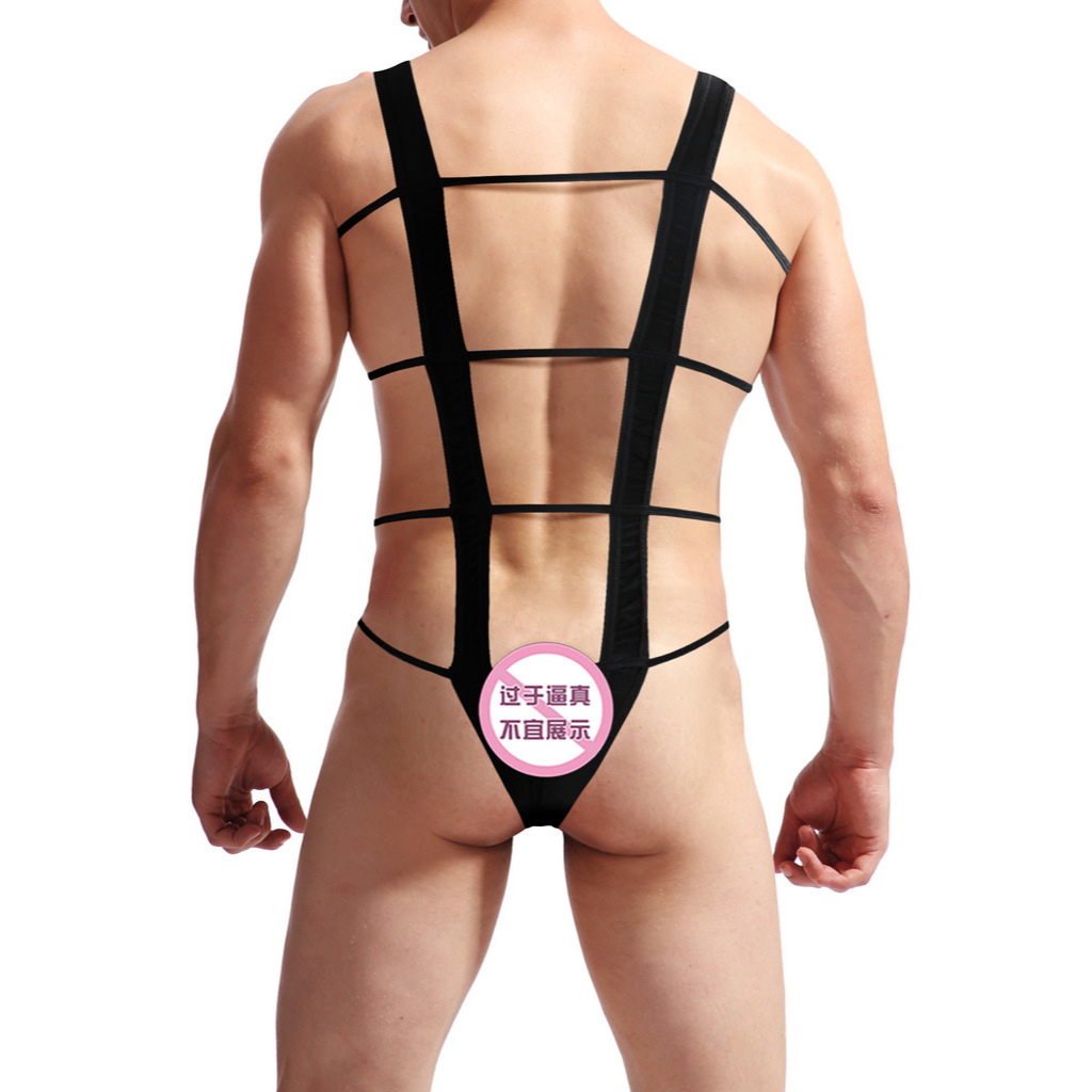 Pt297 Men's Sexy Transparent Ultra-Thin Gauze Sling Halter Hipless Bodysuit Underwear Sports Muscle Male Fitness Sports Breathable U-Protruding Pouch Look Big Sexy Bodysuit Gay Couple Perspective Sad