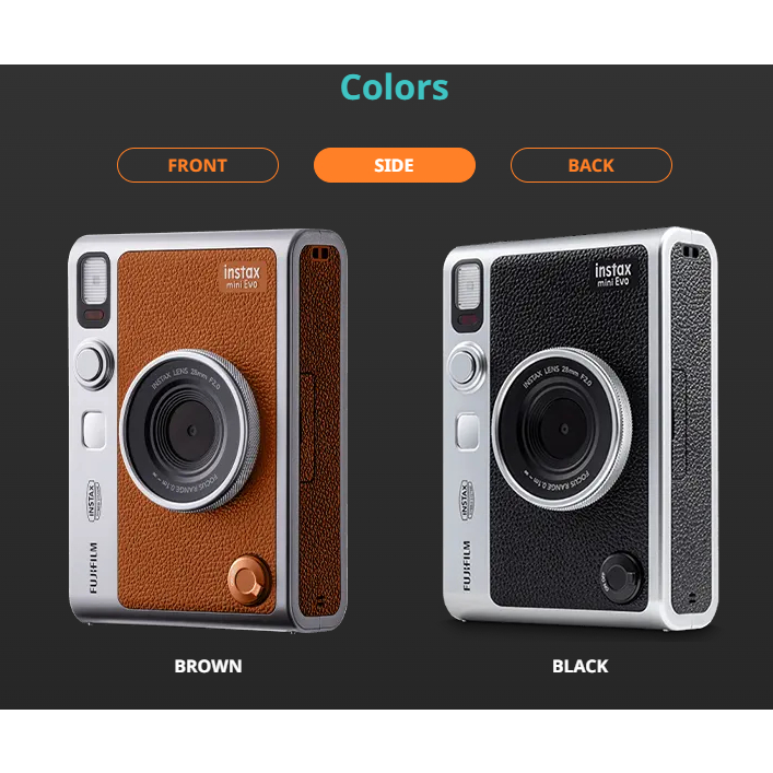 Value For Money:good Performance:excellent Best Feature(s):all Fast delivery and good service by seller. Camera works well as expected. Ordered a brown instax evo but since it's OOS, seller had the honesty to come forward about it. Chose to opt for the black one still and received my balance refund. Thank u!