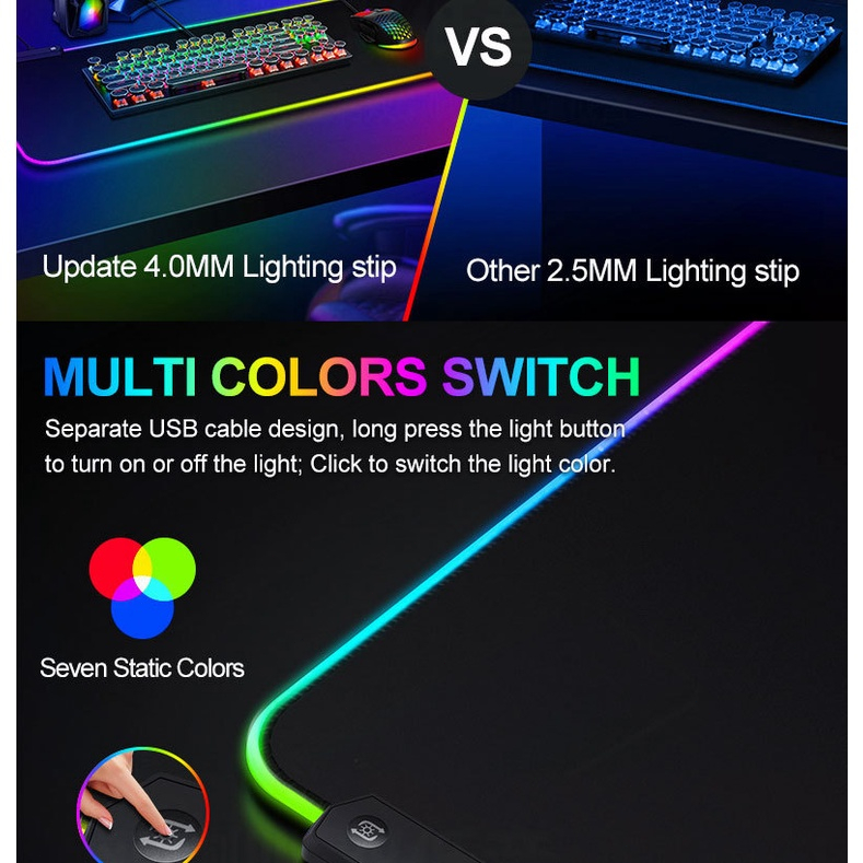 [SG Stock] New RGB Gaming MousePad/7 LED Color Backlit+3 Lighting Model Large Desk Mat Mouse Mad (Water-resistant)