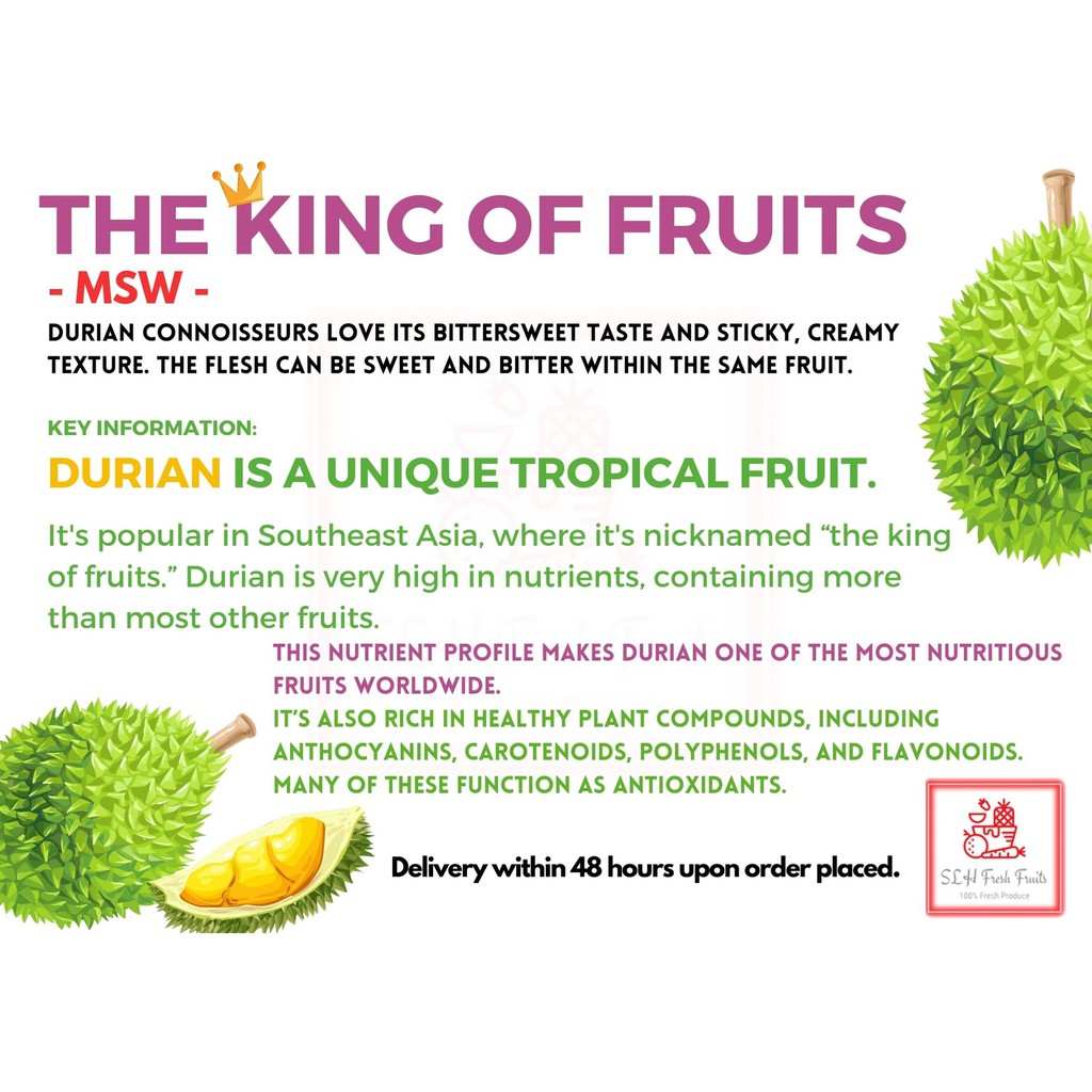Repeated purchase. Reliable and fast. Good quality MSW. Coconut came with straw and metal spoon, very convenient. Even after eating durian can still taste the coconut sweetness and fragrance ??