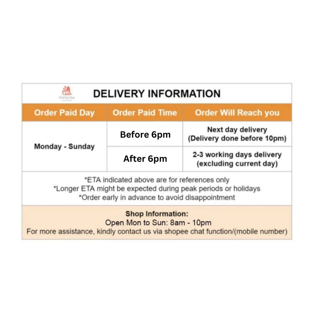 Taste:Good Quality:Good Suitability:Good My first time ordering from SLH. Prompt next day delivery. Bought during Shopee Live stream so had additional discount plus received 2 free Thai coconuts; with thanks. The seeds were average size and durian definitely fresh. I’m looking forward to buy again.