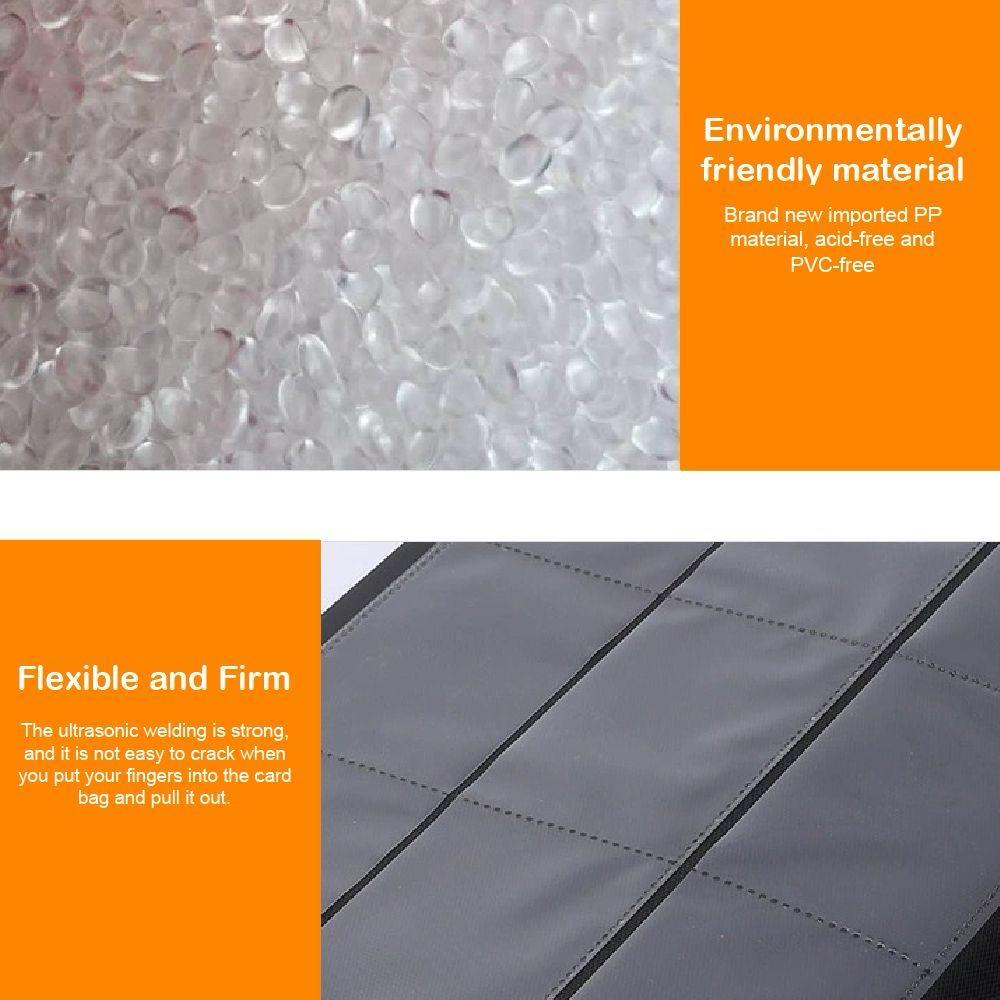 Quality:Good quality. Hard cover. Appearance:Brand new as expected. Incredible delivery speed. Received the next day. Kudos to the seller. Amazing quality, able to put cards with sleeves on.