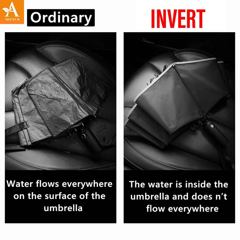 I like automatic. Nice small, colorful orange, thick UV umbrella. Length 28.5cm folded. Umbrella coverage diameter about 95cm. The Inverted umbrella is good for driver. length 34cm folded. Umbrella coverage diameter about 105cm.