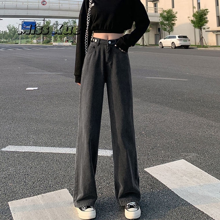 【Miss Xue】台灣出貨直筒褲 寬松 牛仔褲女 高腰 淺色 高腰 顯瘦 小個子 拖地褲 闊腿褲 女生褲子 長褲女
