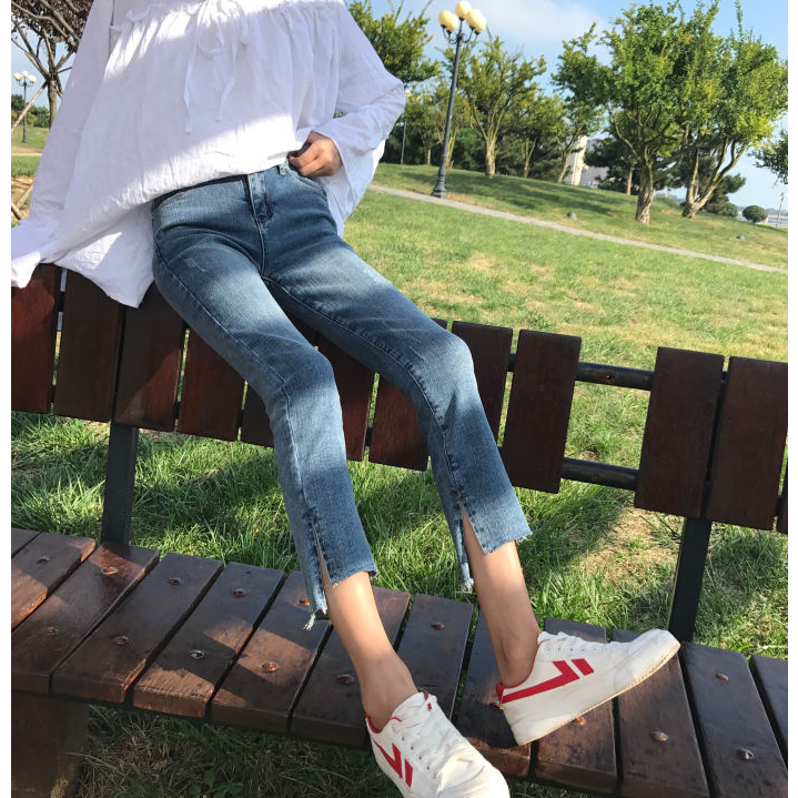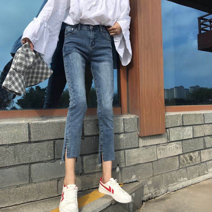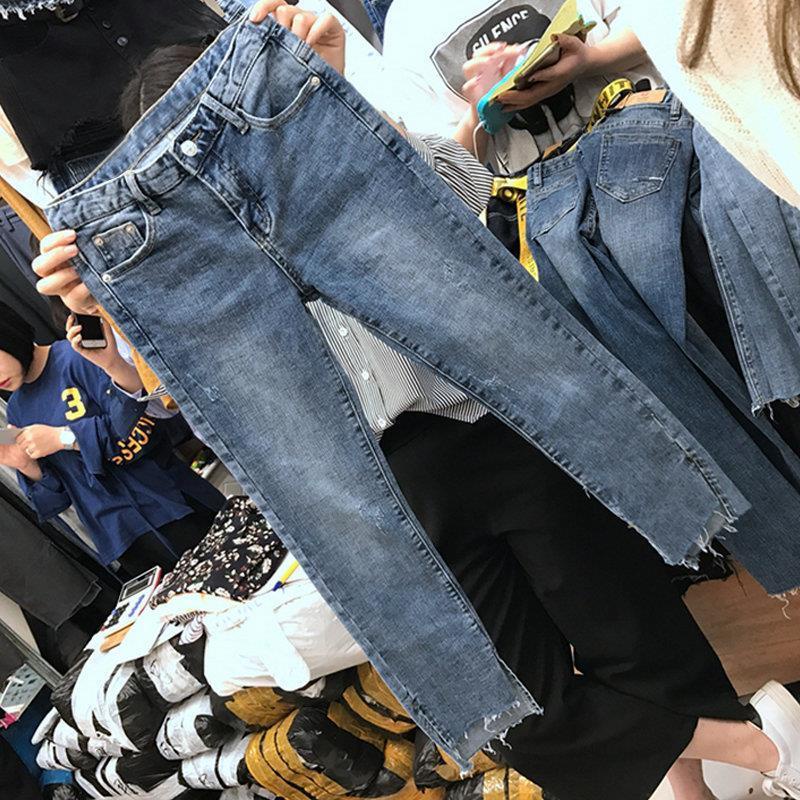 大尺碼 牛仔褲女 九分褲 韓版牛仔褲女 牛仔褲女新款高腰彈力顯瘦100公斤大尺碼直筒九分褲春夏新款