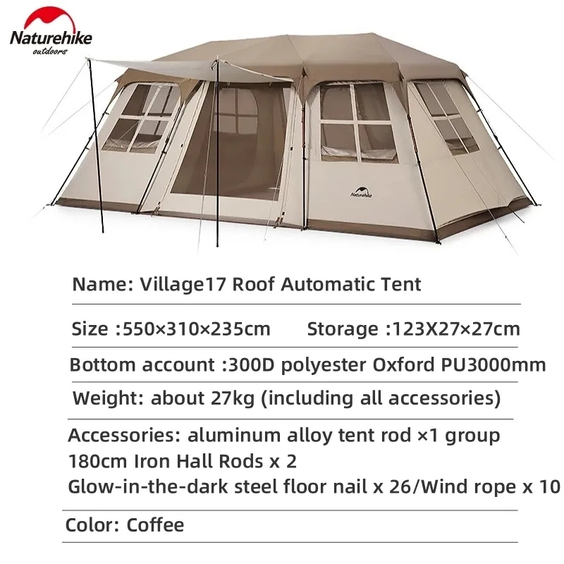 ???Ready Stock Naturehike Village 17 Outdoor Camping With 2 Foyer Automatic Tent Waterproof Sunscreen Large Space With 2 Room Quickly Open Tent