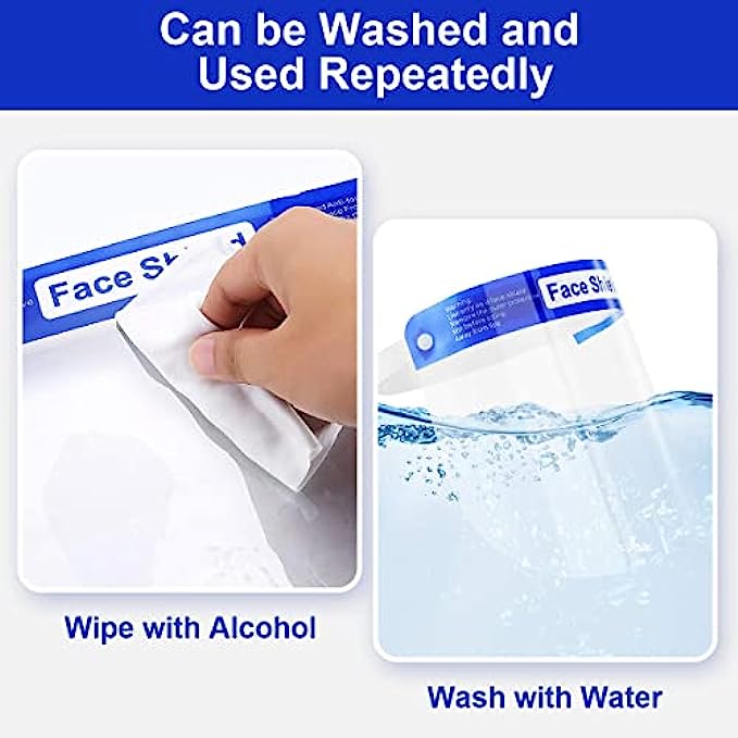 【Environment Friendly & Premium Quality】 We always insist on using premium materials to produce higher-quality products. This face shield is made of recyclable waterproof PET (polyethylene terephthalate) to effectively isolate saliva and fully protect the face from sprays, splashes, drops, dust, oil, smoke and etc.