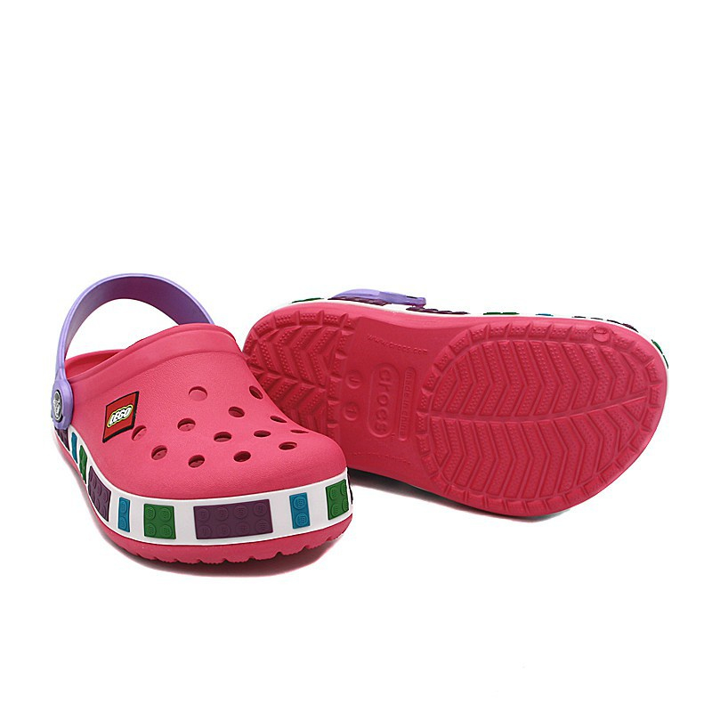 Colour is very fresh, comes with free charms. Somehow the pink one has fewer charms than the blue. Size is true to chart, measures the insole length. Delivery took a while, close to 2 wks.