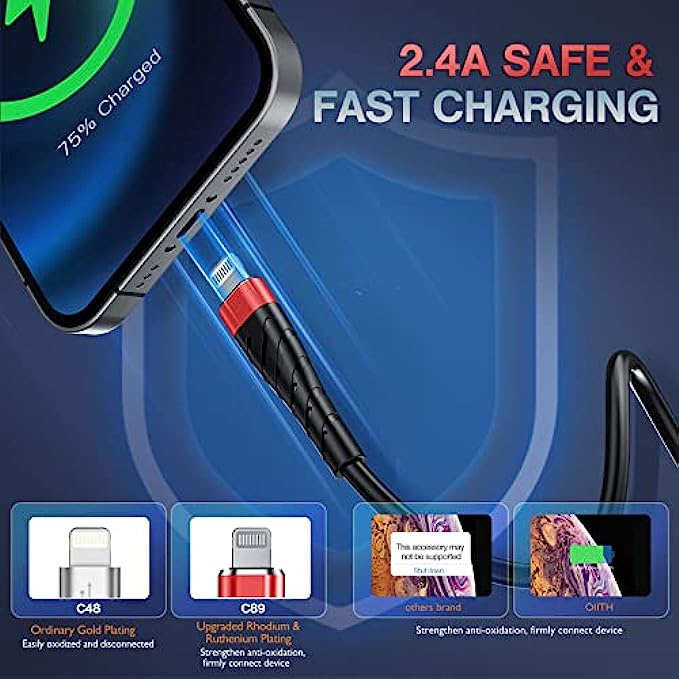 [ Apple MFi-certified Lightning Cable ] - 3 Pack 6Ft OIITH apple cable adopts Apple's officially certified chip to ensure faster and safer charging. No rupture, low loss.