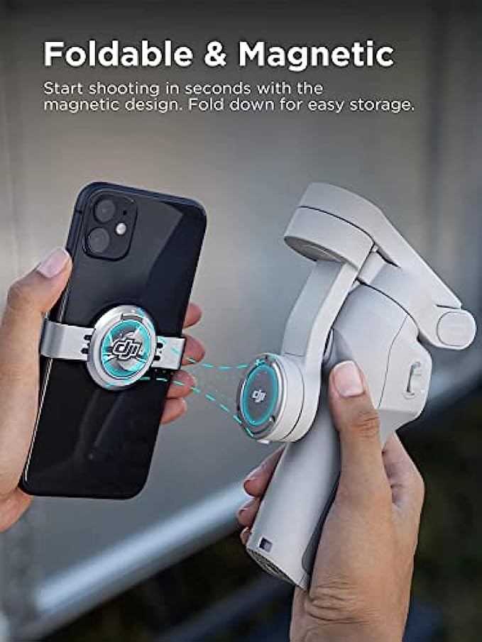 Feel the Pull - Instantly attach your smartphone to the DJI OM 4 SE gimbal stabilizer and enjoy perfect filming on the go. This gimbal stabilizer for smartphones uses a magnetic design for fast, easy phone attachments, letting you capture smooth and creative footage whenever inspiration strikes.
