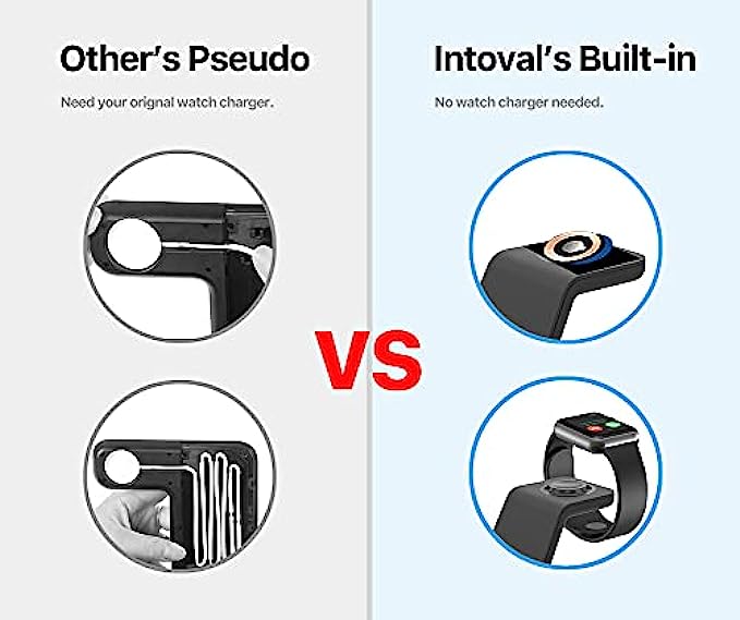 Intoval Wireless Charging Station, 3 in 1 Charger for Apple iPhone/iWatch/Airpods,iPhone 13,12,11 (Pro, Pro Max)/XS/XR/XS/X/8(Plus),iWatch 7/6/SE/5/4/3/2,Airpods Pro/3gen (A3,Black)