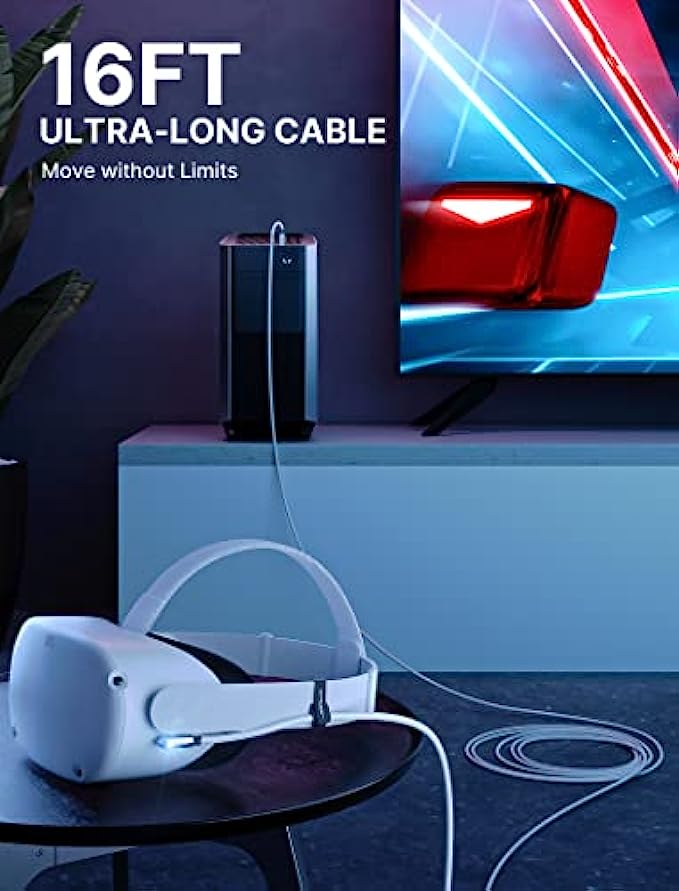 Long 16ft Link Cable: Durable and flexible design allows you to travel in the VR world without being restricted, enjoying every moment in the VR world freely.