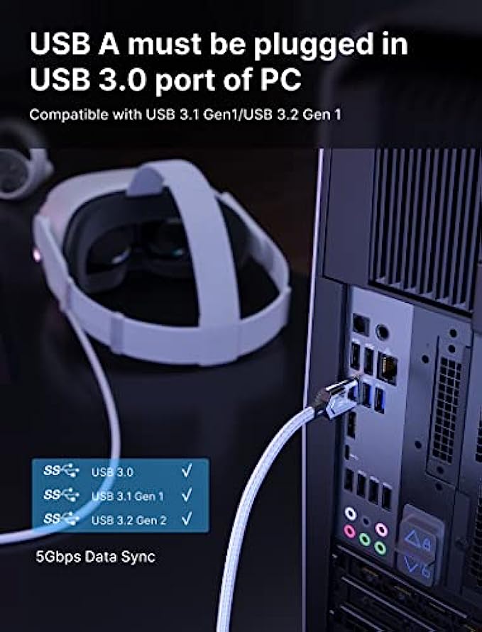 Compatible with Oculus/Meta Quest 2: JSAUX link cable connects Oculus Quest 2 to a gaming PC so that you can play all Oculus Rift apps and Steam VR games, providing perfect PC VR experience.