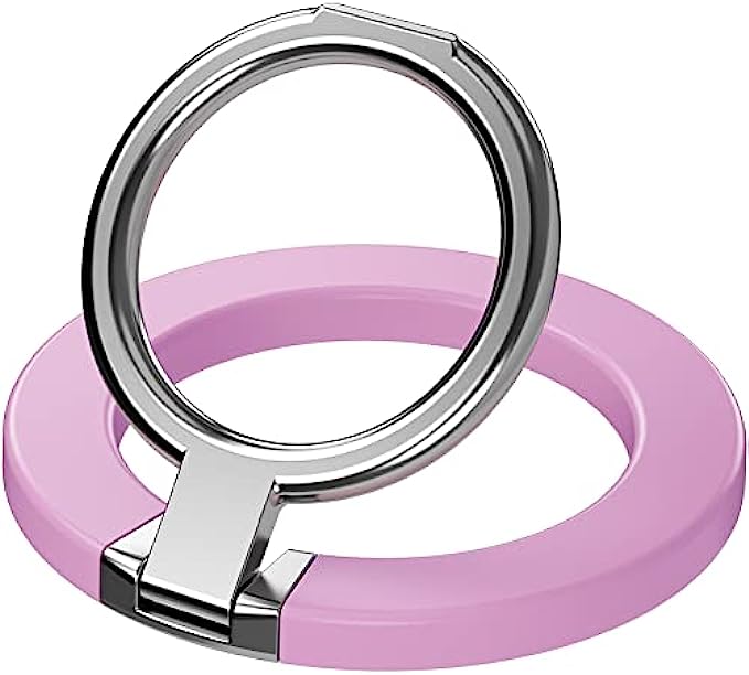 Jumaocun Magnetic Cell Phone Ring Finger Grip Holder Stand for iPhone 13 12 Pro Max MagSafe Smartphone Hand Accessories Adjustable Removable Wireless Charging Compatible with Most Mag Safe Case - Pink