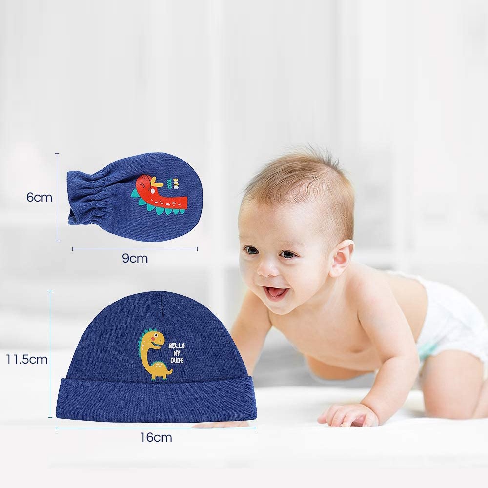 Kiddiezoom Newborn Cotton Anti-Scratch Gloves / Baby Breathable Hat / Glove and Hat Combination Set 2022 New