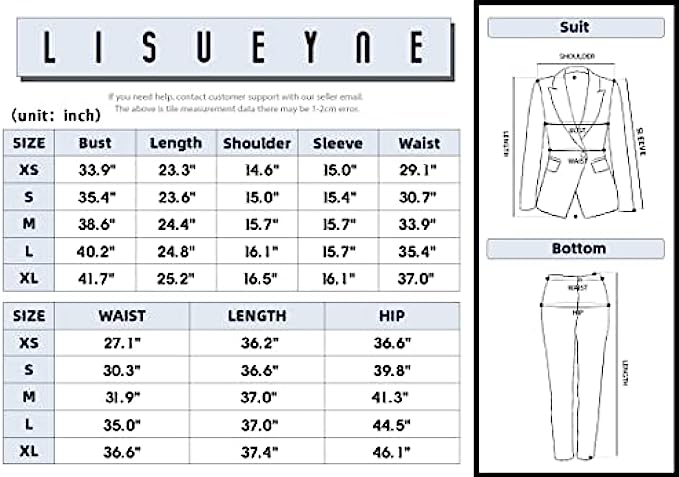 LISUEYNE Women’s Two Pieces Blazer Office Lady Suit Set Work Blazer Jacket and Pant