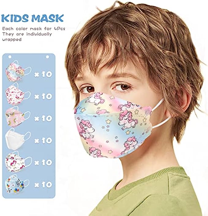 【Exclusive Design】: The KF94 fish mouth design can form a perfect wrap from the chin to the bridge of the nose without leaving a gap. At the same time, it can prevent the mouth from contacting the mask, which increases the safety level and has the best wearing feeling. 【Product Introduction】: kids disposable face masks,The folding specification is :17*7CM, the unfolding is :17*15 CM, four layers of protection, can be close to the face, get the best protection effect, the ear hook is 6CM, the longest stretch is 18CM, and the elasticity is excellent. 【Four-layer Material】: the outermost layer is made of printed non-woven fabric, and the middle layer is made of two layers of melt-blown fabric, which can effectively prevent PM2.5 and protects up to 95%. The last layer is made of skin-friendly non-woven fabric, which fits the face without hurting the skin . 【Strong air Permeability】: Because the fish mouth shape design reserves a larger breathing space, a part of the air is reserved in the empty slot. This design will have better air permeability than ordinary masks and easier to breathe. Glasses will not be so Foggy. 【You Will Get】: 6 patterns, each 10 pieces individually packaged, a total of 6 packs (60 pieces)