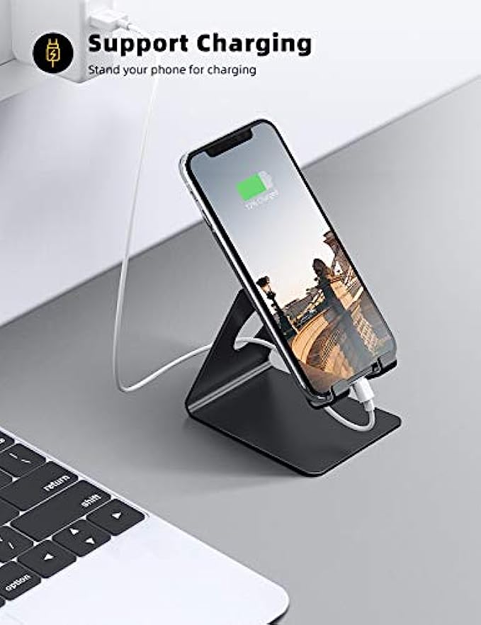 【Stable and Anti-scratch】The iPhone stand is made of high-quality aluminum alloy with a nice finish. Stable and easy to watch Youtube or FaceTime. Besides, rubber non-slip pads protect the surface of your phone case and desk from scratches.
