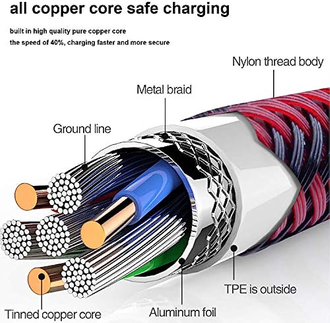 【Fast Charging & Data Sync 2 in 1】:2.4 Amp(MAX) fast charging and 480mpbs/s data transmission, while preventing overheating and overcharging. Trickle charge and protect the device battery.