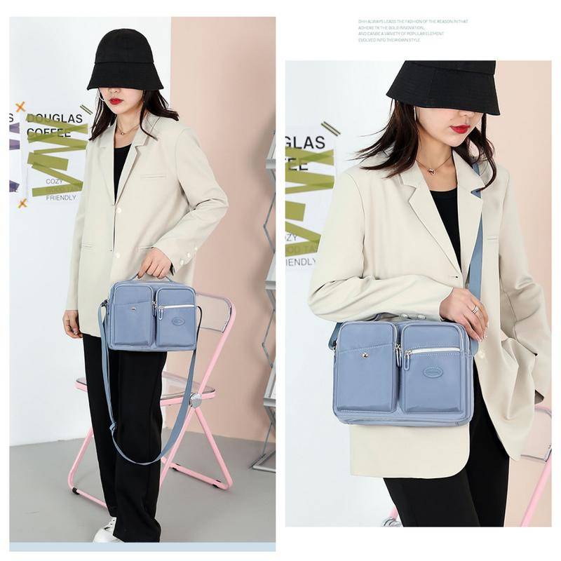 Multifunctional Waterproof Tote Handbag Multi-Layer Storage Design Large Capacity Fashion Shoulder Bag Water-Repellent Nylon Fabric Cross-Body Bag Outdoor Leisure Commuter Busi