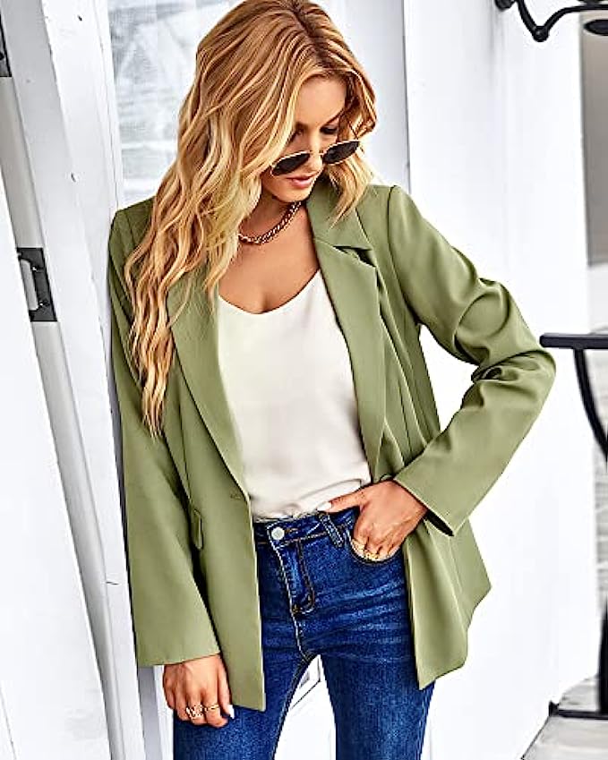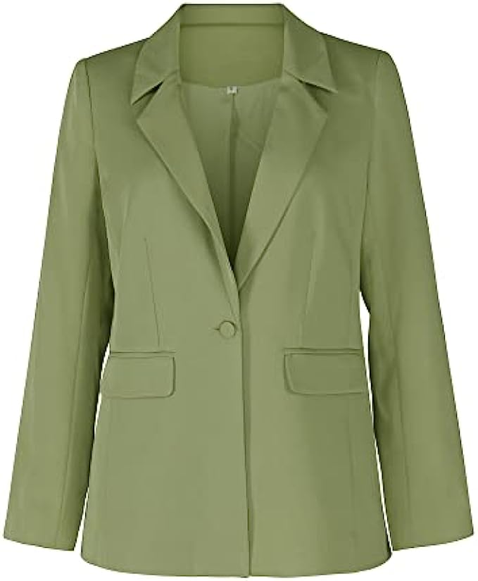 Classic Design: The casual blazer comes with one button, long sleeves and two functional flap pockets. This business blazer goes with four color, black blazer/ white blazer/ apricot blazer/ green blazer/khaki blazer, This is one of those open front blazer that is so flattering you want one of every color