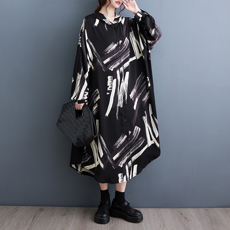 Oladivi Fashion Print Long Sleeve Button Dress for Women 2023 Spring Autumn Casual Loose Midi Dresses Oversized Clothing Plus Size Tunic Robe 5869 JM004