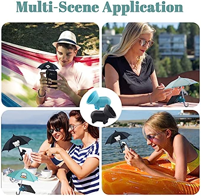 ?️【Creative Design-Cute Phone Umbrella】The phone umbrella for sun shade can be used as a sunshade and light-proof umbrella for phone outdoor, very eye-catching. And also can be a creative desktop cell phone holder at home a car phone holder parasol, you will get a lot of compliments.