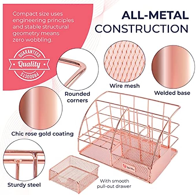 ? GREAT GIFT FOR ALL: Enduring steel design is built to last through the years of schooling and well into your chosen career. Our rose gold office decor for women desk is a great gift for students, teachers, freelancers who value organization & style