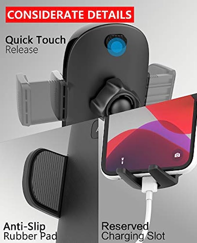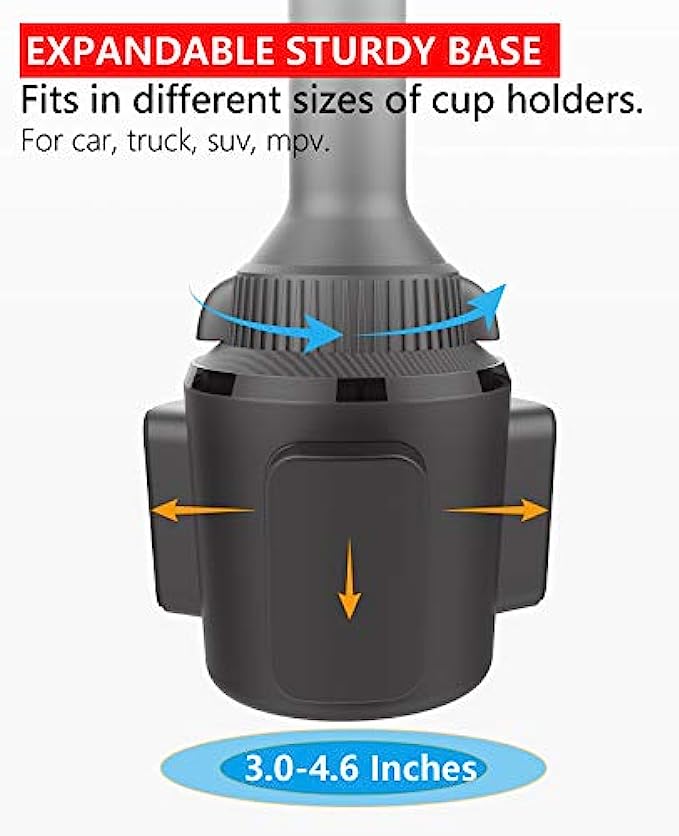 Quick Extension Sturdy Arm: No more screws adjusting, just pull and push to adjust the height. Easy one-hand operation! The car cup holder phone mount can reach a maximum height of 12.4" for easy operating and access to your device without blocking anything on the console. No Blind Sides: Thanks to a rotatable neck, swivel your device quickly and simply at any time to your optimal viewing angle, no more reinstalling the cup phone holder to rotate it to a sweet spot. Tilt, rotate, or swivel easily to adjust your device with the phone holder either in landscape or vertical viewing angle. Solid Adjustable Cup Holder: The adjustable mounting base has 3 rubber padded claws that fit securely into a car cup holder between 3.02" and 4.62" in diameter, no wobbling even on a bumpy road, enjoy hands-free driving, and spend more times at the wheel. Tool-free installation, simply adjust the screw to expand the base to fid your cup holder. One-Hand Operation Versatile Phone Car Mount: One press release design, install or remove a smartphone with only one hand. The cup phone holder for car has a foot and two adjustable arms with a silicon pad, it holds the cell phone tightly. The open bottom tray design provides access to effortless charging. Super Compatibility Cup Phone Holder for Car: Adjustable extension arm design is suitable for all iPhone & Andriod Cell Phones although with a thick case, iPhone cup holder for car compatible with iPhone 13 Pro Max, 13 Pro, 13 Mini, 13, 12 Pro Max, 12 Pro, 12 Mini, 12, 11 Pro Max, 11 Pro, 11, XS Max, XS, XR, X, 8 Plus, 8, 7 Plus, 7, SE (2022), SE (2020), SE, 6s Plus, 6s, 6 Plus, 6, 5s 5c 5 4S 4; cup phone holder for Google Pixel 6Pro 6 5a 5 4a 4XL 4 3aXL 3a 3XL 3 2XL 2 1, Nexus 6P 6 5X 5, etc Universal Cupholder Phone Holder for Car: works for Samsung Galaxy S22Ultra S22+ S22 S21+ S21Ultra S21 S20FE S20 S20Ultra S20+ S10 S10+ S10e S9 S9+ S8 S8+ S7 S6 S5 S4 S3 S2 S, Note 20Ultra 20 10 10+ 9 8 5 4 3 2 1, A91 A90 A80 A72 A71 A70 A70s A60 A53 A52S A52 A51 A50 A50s A42 A41 A40 A40s A33 A32 A31 A30 A30s A23 A22s A22 A21 A20 A13 A12 A11 A10 A10e A10s A03 A02 A01, M62 M53 M52 M51 M42 M42 M40 M33 M32 M32 M31 M30 M23 M22 M21 M20 M12 M11 M10 M02 M01, F62 F52 F42 F41 F23 F22 F12 F02S and more.