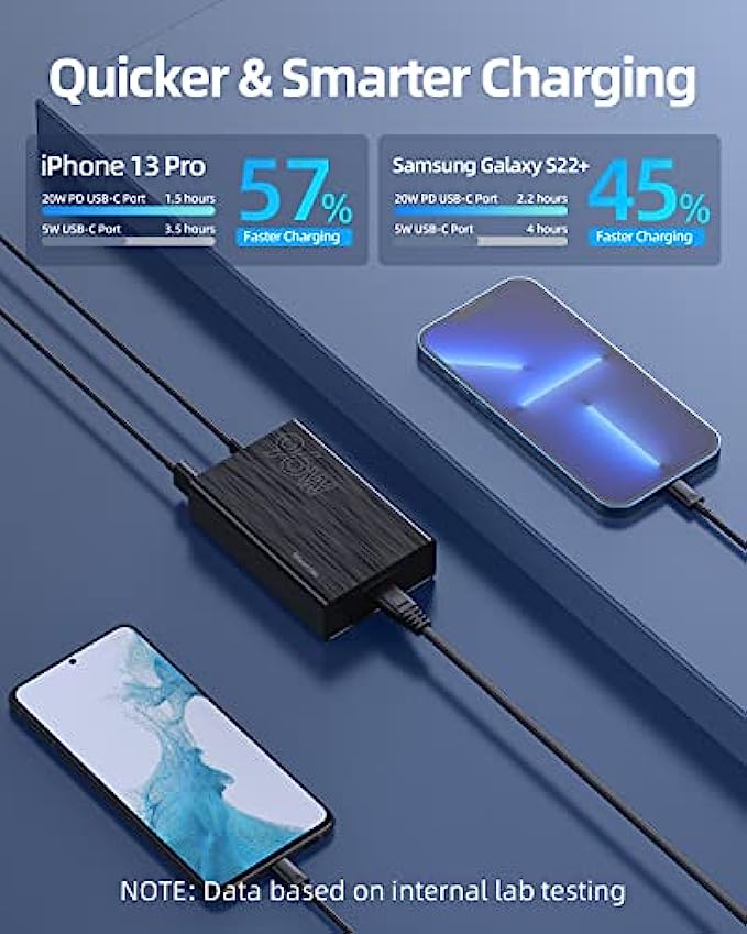 • 【Universal Compatibility】: Charge virtually all your mobile and tablet devices at maximum speed with USB-C and standard USB input. This multiport USB C wall charger are compatible with iPhone 13/13 Pro/13 Pro Max, iPhone 12/12 Pro/12 Pro Max/, iPad Pro/iPad Air, Samsung Galaxy S22 Ultra/S21 Ultra Series, Pixel 6/5/4a, and More.
