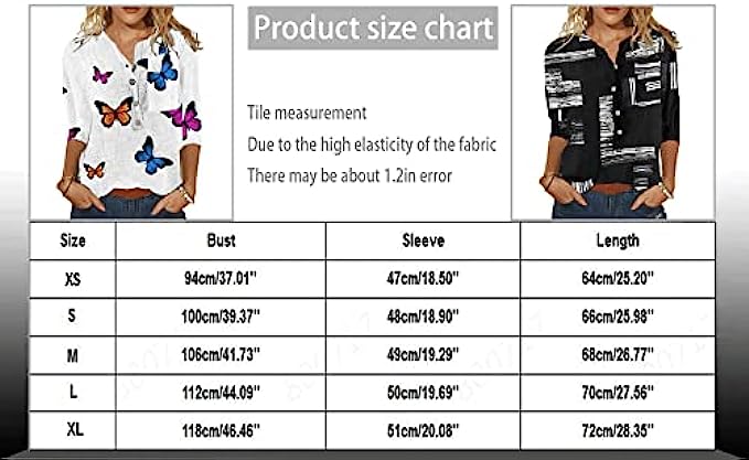 100% Polyester round neck button closure Hand wash recommended, machine washable, hang to dry High-quality polyester fabric material, unique design, a blend of V-neck, front button shirt and comfortable printed short sleeves. Breathable and opaque, loose and elegant, refreshing in summer! If you like the loose one, you can choose the bigger one. Floral print shirt, simple and slim, loose and short fashion, classic wide sleeve lapel T-shirt, simple shirt casual and fashionable, spring and summer wear, timeless. Loose Button Short Sleeve, Chiffon 3/4 Sleeve Top, Fit, Fashion and Elegant, Sweet and Sexy Style Show Your Unique Personality, Such a Fashionable Cute and Comfortable Top, Summer Women's Must-Have Top. You can wear this button-up top with jeans, leggings, shorts, yoga pants, slacks, boots, heels, jackets or coats and more. This classic shirt can be worn on many different occasions, parties, work, clubs, vacations and more. Size Note: S-XXL are optional, please refer to the size chart before placing your order.