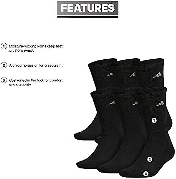 adidas mens Athletic Cushioned Crew Socks (6-pair)