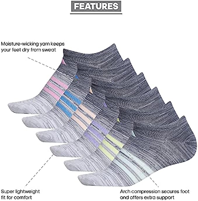 adidas womens Superlite Space Dye No Show Socks (6-pair)