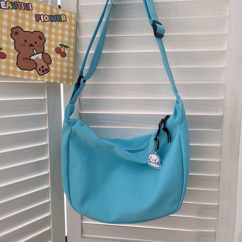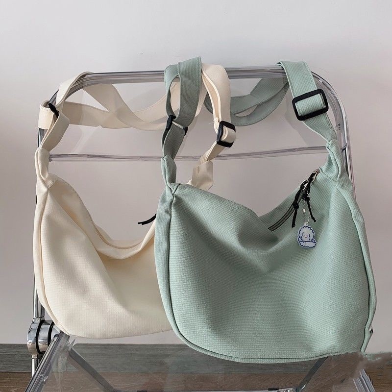 Crossbody Bag Student ins Japanese Shoulder Simple Waffle Casual Art Messenger Solid Color Dumpling YKD YK