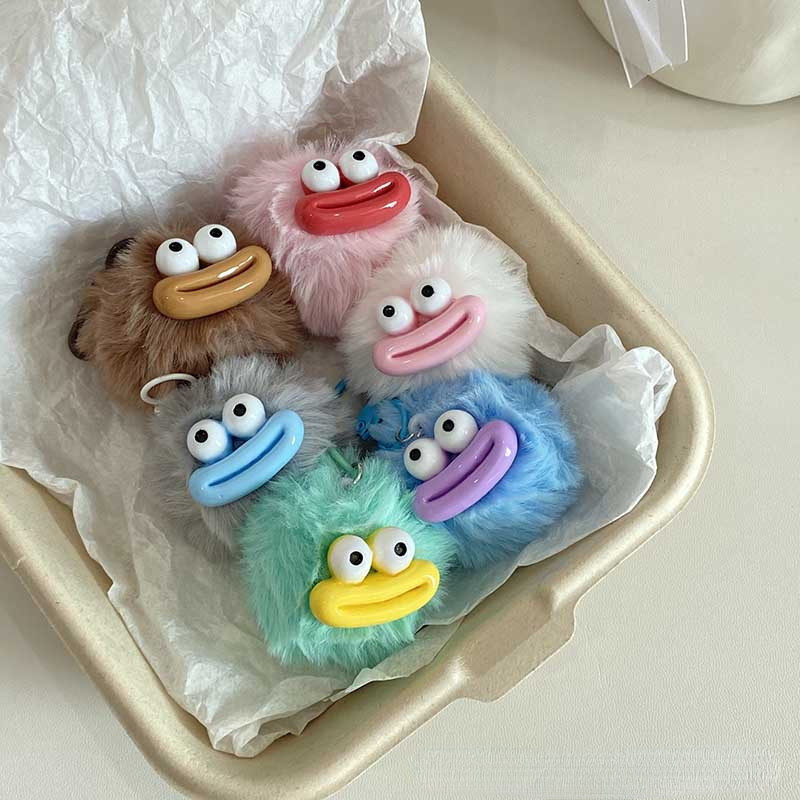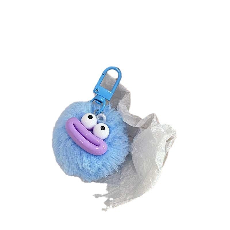 Cute Sausage Mouth Fur Ball Keychain Funny Fun Pendant School Bag Ornaments