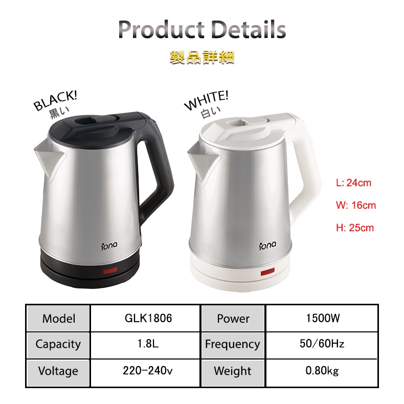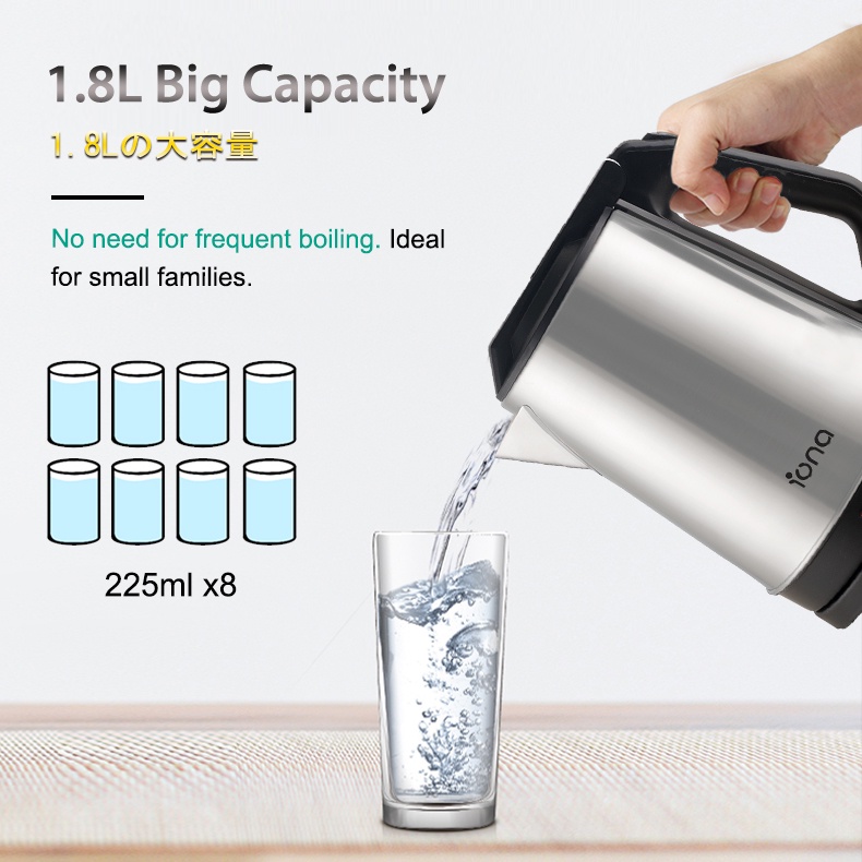 Value For Money:yes Performance:good Best Feature(s):stainless steel Good capacity at 1.8L. Stainless steel body and under the cover. Easy to use and water boils quite fast.