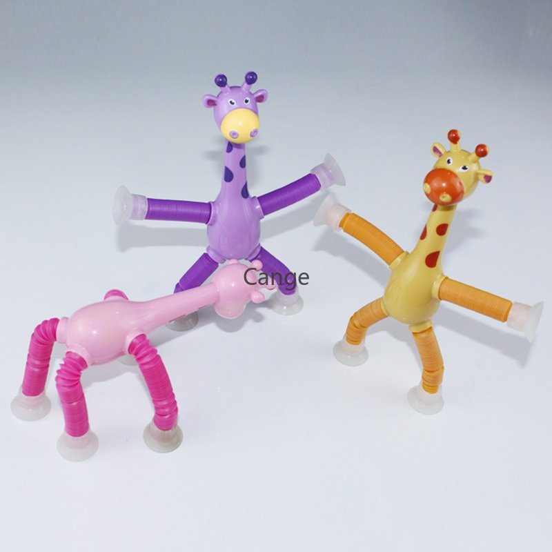 LED Telescopic Suction Cup Giraffe Toy Cartoon Puzzle Suction Cup Parent-Child Interactive Decompression Toy Stress Relief