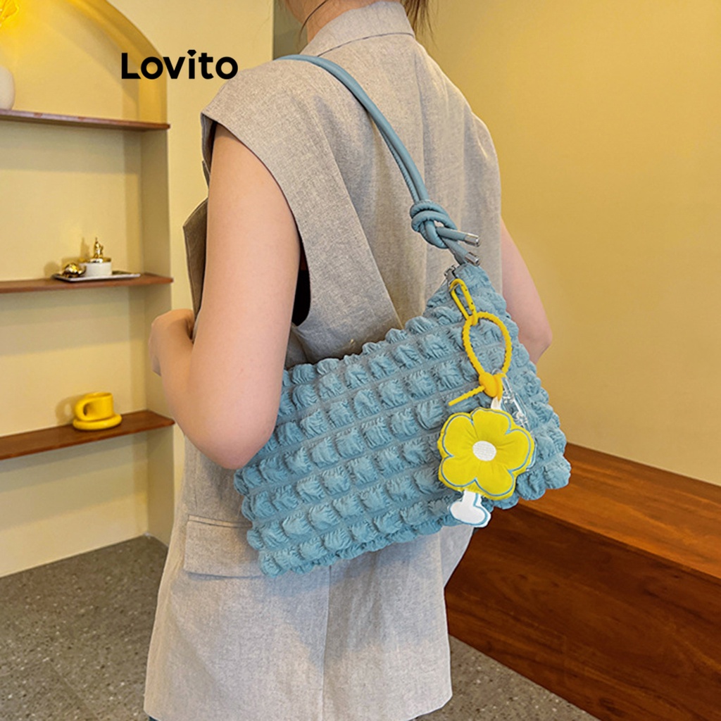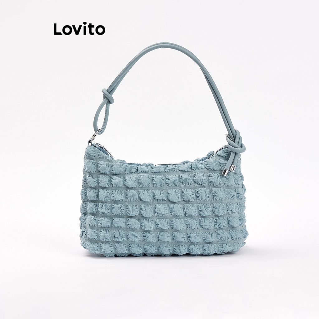 Material Quality:Good Colour:Cream white and blue Received with satisfaction. I love this Lovito shoulder bag. I thought small but so cute and very spacious inside. Super love the Lovito .. Thank you seller.