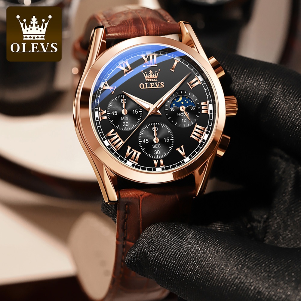 OLEVS Luxury Watch for Men Waterproof Original Quartz Multifunction Calendar Luminous Business 2871