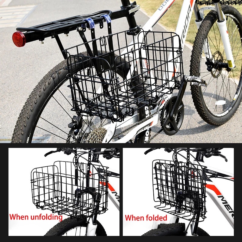 【SG STOCK】Foldable Metal Bicycle Basket for Scooter all Bicycle Ebike Escooter Bike Basket Bike Front Rear Carrier 自行车篮