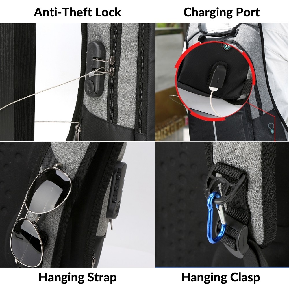 I like that the bag is wide enough to cover my entire back and comes with cushioning. Has most of the features like bag lock and USB outlet. Simple and brandless design ??