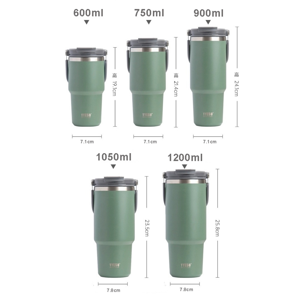 TYESO Thermal Tumbler Flask Water Bottle Car Cup Vacuum Insulated Bottle Stainless Steel Coffee Cup